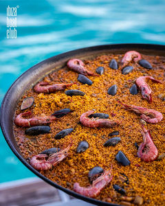 Immagina questo: i tuoi ospiti che si godono il gusto squisito della Paella Ibicenca appena fatta, preparata con amore durante il nostro show cooking a bordo. Ad accompagnare questa delizia culinaria ci sono rinfrescanti sorsi di Sangria de Cava fruttata e la classica Sangria de Vino Tinto.